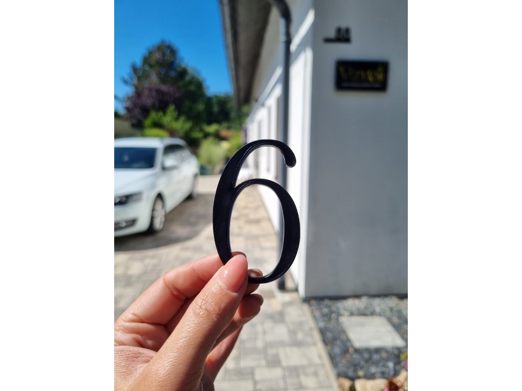 Designové domovní číslo z plexiskla (výška 8 cm) pro dveře, fasádu či schránku. Barvy a fonty na míru, samolepící.