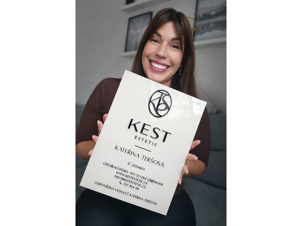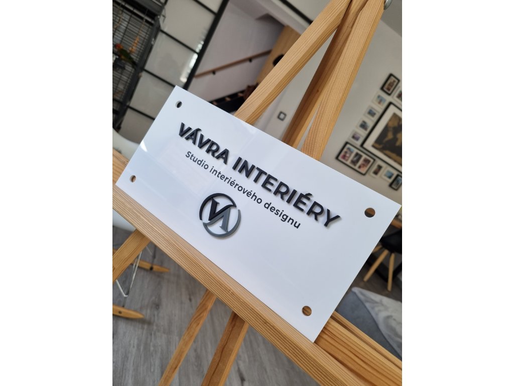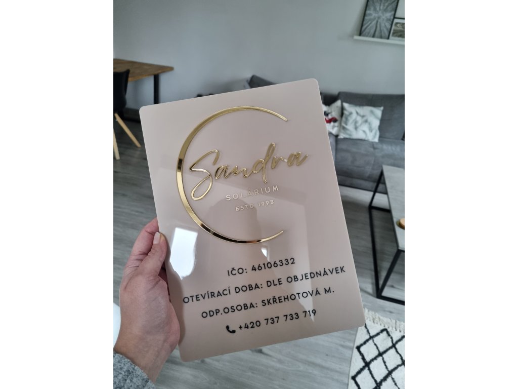 Designová firemní cedule z plexiskla s logem s plastickým 3D efektem– ideální pro luxusní označení provozovny - salonu, studia, ordinace, kanceláře...