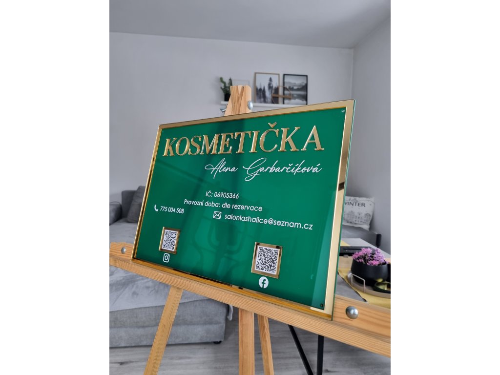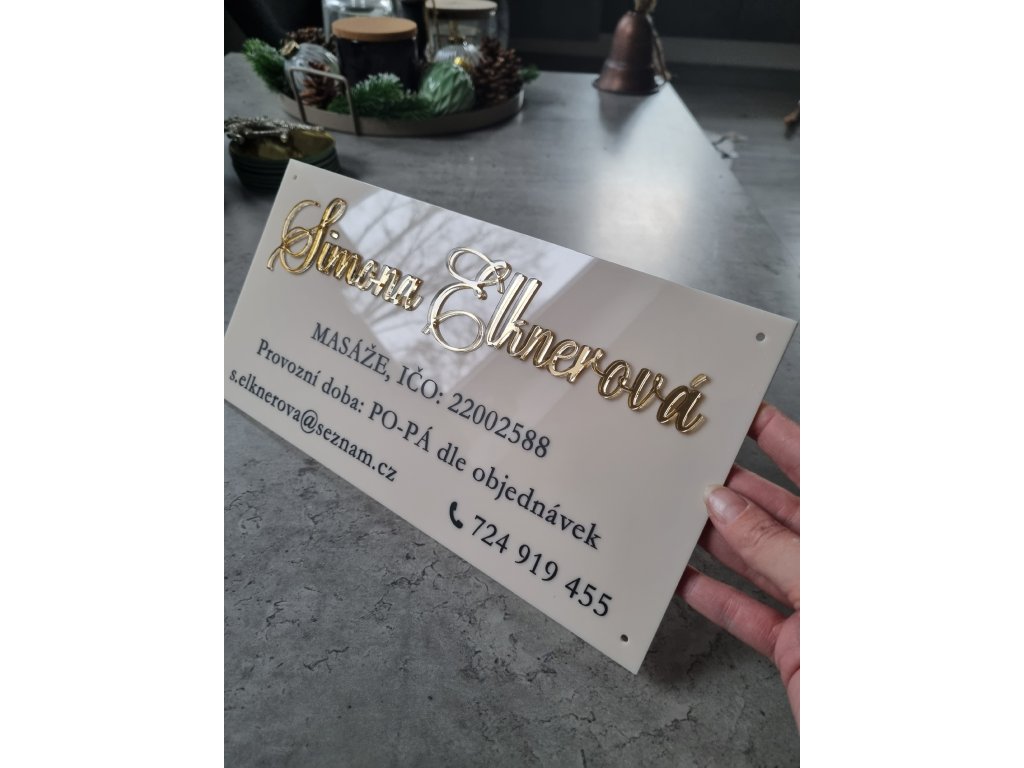 Každý kousek vyrábím na míru vašemu brandu – můžete si zvolit barvu plexiskla i textu tak, aby ladily s interiérem vašeho salonu, studia nebo kavárny.