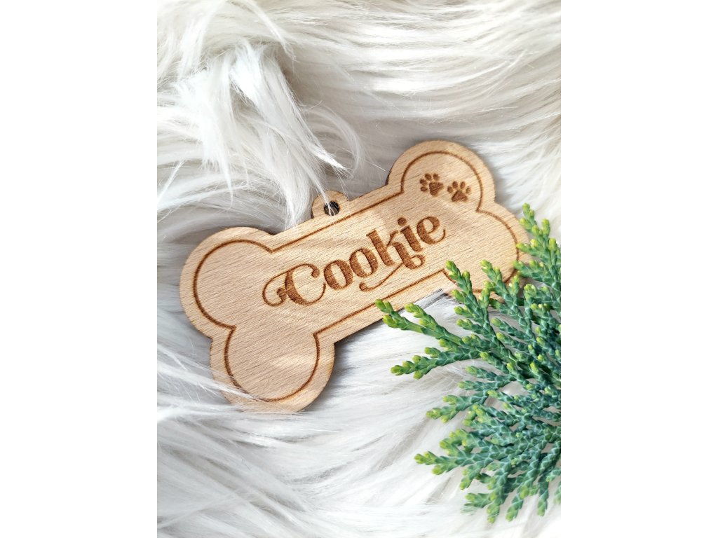 Personalizovaná vánoční ozdoba ze dřeva se jménem vašeho čtyřnohého miláčka – krásná, prakticky nerozbitná dekorace na stromeček.