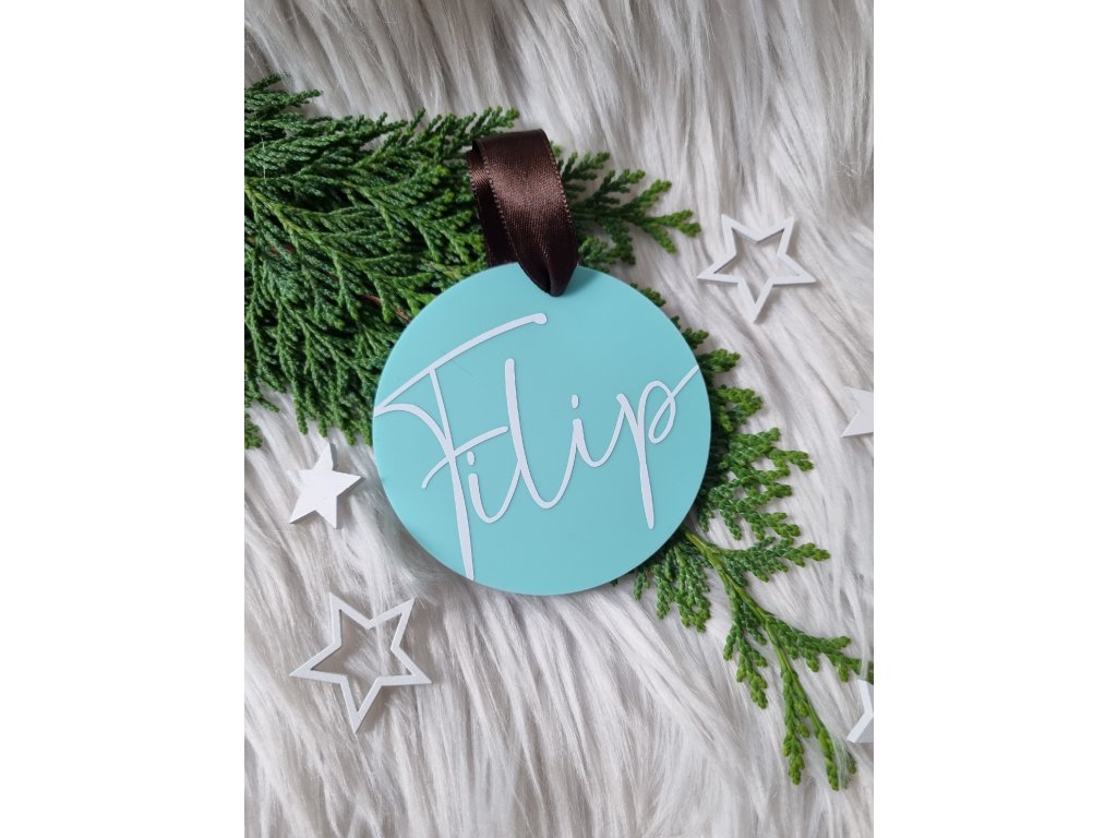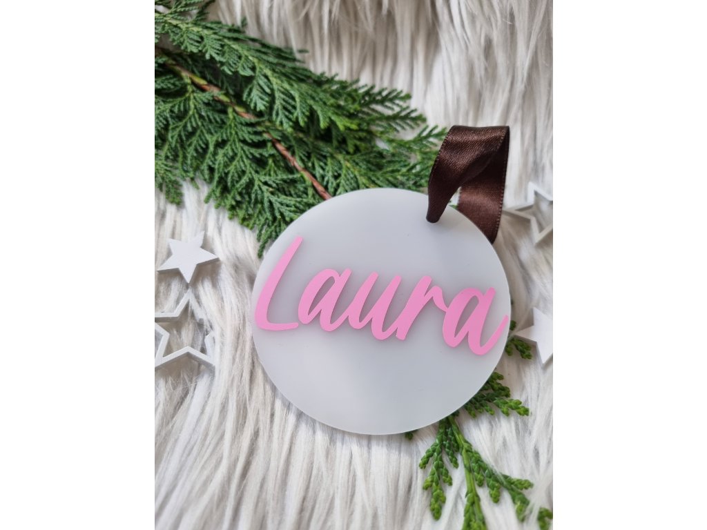 Prakticky nerozbitná ozdoba na vánoční stromeček z plexiskla se jménem na přání.