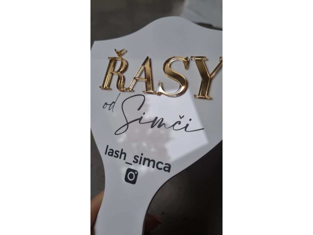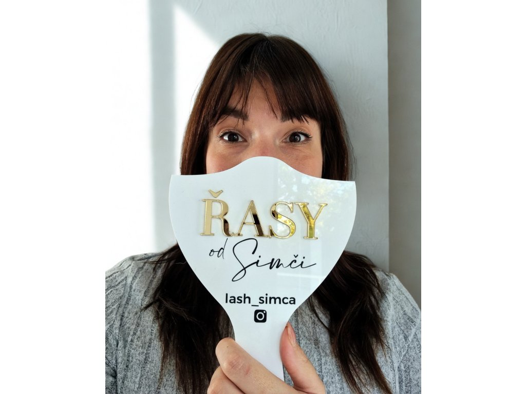 Zrcátko z plexiskla se jménem artistky a plastickým nápisem ŘASY/OBOČÍ/LASHES/BROWS– ideální fotorekvizita pro kosmetičky, brow a lash artistky. Elegantní způsob, jak chránit svou práci, klientčino soukromí a zároveň prezentovat svůj brand stylově na sociálních sítích.